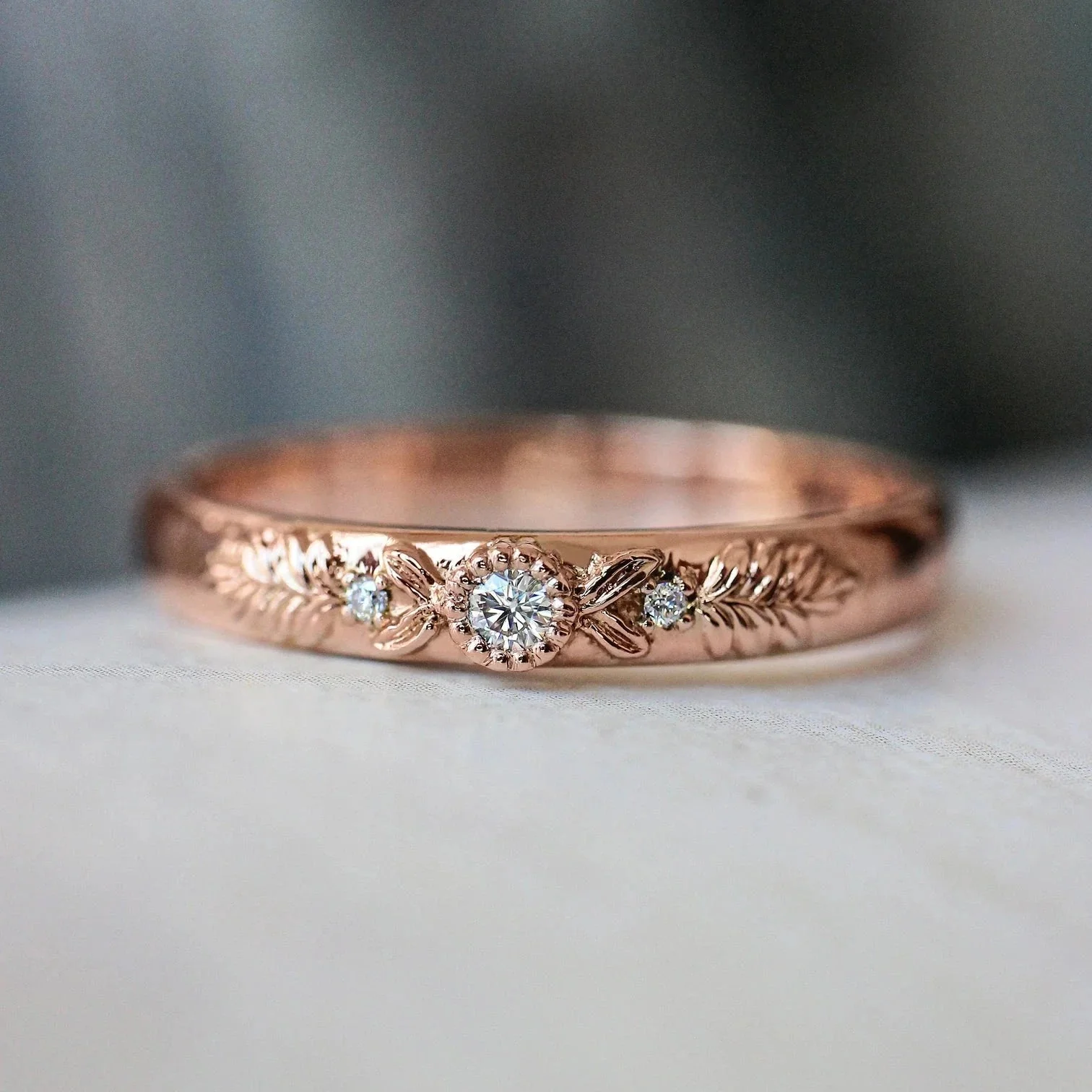 A promise, a feeling, a forever kind of vibe. This rose gold-plated band is engraved with delicate flowers, leading to a radiant round-cut white zircon at the center. Subtle yet full of meaningābecause soulmates just know.