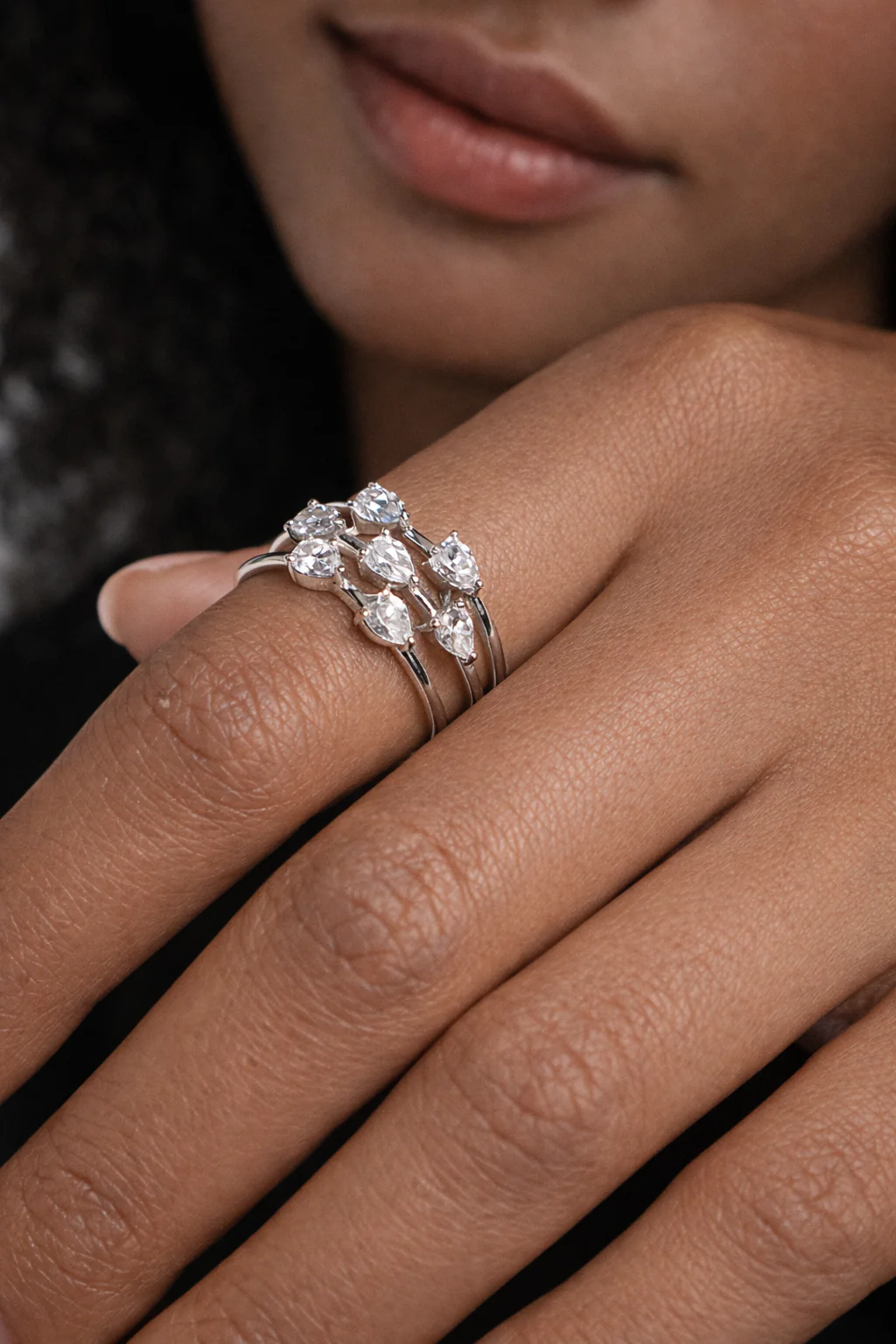 7 Pear Zircon Stones Ring Silver
